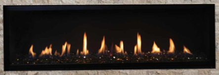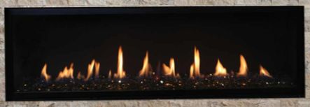 The Allume linear direct vent gas fireplace offers a sleek modern appearance that is right at home in contemporary and transitional spaces. An expansive ceramic glass opening provides an exceptional view of the gently dancing flames rising through the beautiful reflective black glass floor media. The Allume includes a wireless wall-mounted control that provides variable flame settings at the touch of a button.Read More