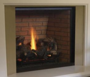 Gas controls are conveniently hidden to the side of the fireplace opening for easy installation and finishing