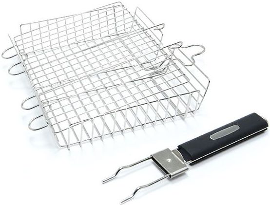 Made of stainless wire with a soft grip detachable handle, this grilling basket is ideal for roasting on the grill or fireside. Multi–position lid, simple to use locking mechanism.