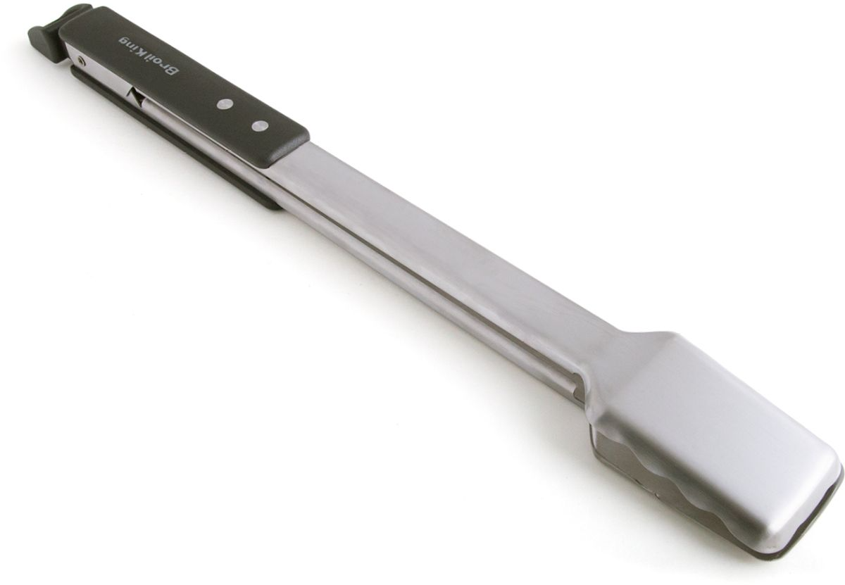 Premium locking grilling tongs that feature a flat side to scoop items, and a scalloped side to grip them. Large resin handles with contrasting under-mount grips and logo. Durable box-shaped shafts and integrated hanging hook.Read More