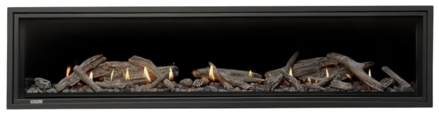 The DelRay Linear is a high efficiency, mobile home compatible fireplace that is ready to customize with any of our stunning burner media options. Combustible wood facing can be installed right down to the glass opening.