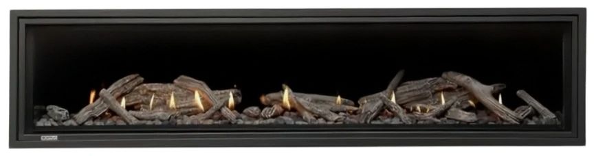 The DELRAY Linear is a high efficiency, mobile home compatible fireplace that is ready to customize with any of our stunning burner media options. Combustible wood facing can be installed right down to the glass opening.