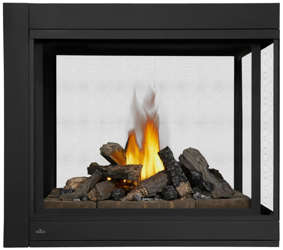 The Napoleon Ascent™ Multi-View gas fireplace with three-sided Peninsula with Log Set features a hand-painted log set for a more traditional looking focal point in any room of the home. This gas fireplace offers a massive viewing area and electronic ignition with battery back-up.Read More