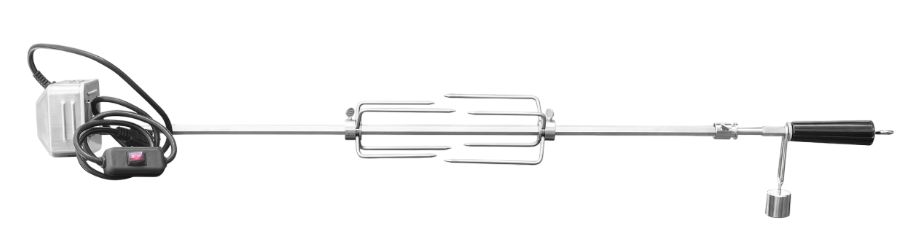 Rotisserie kit includes: stainless steel rod, forks, handle, bracket and motor