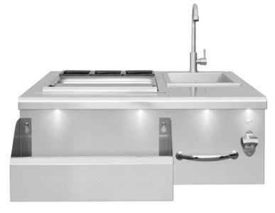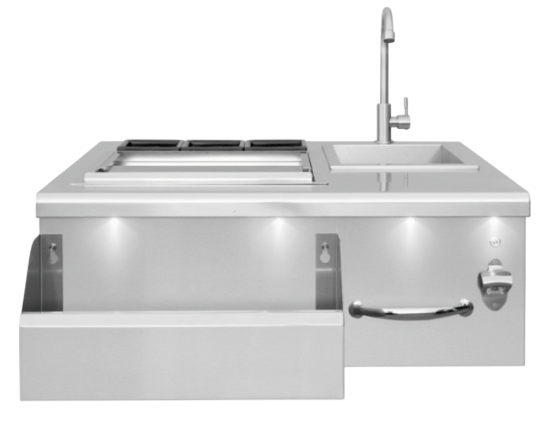 With our grills heating things up, we have just the thing to cool you down! Take your outdoor kitchen to the next level with the Summerset Grills Beverage Center. Complete with a 40 lb. ice compartment, sink, towel holder, white front panel LED lighting, speed rail with condiment tray, built-in bottle opener.Read More