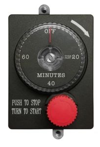This is a mechanical timer (no batteries or power required) that has the ability to control gas flow for 1-hour (60 minutes). In addition, both models have an emergency shut-off (red knob) that enables the user to quickly and easily shut the gas completely OFF, should the need arise.